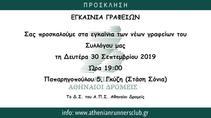 Με πολλή χαρά, σας καλούμε τη Δευτέρα, 30 Σεπτεμβρίου στις 7:00 το απόγευμα στην οδό Παπαρηγοπούλου 5 Γκύζη (Στάση Σόνια) ΤΚ 11473 ΧΑΡΤΗΣ , στον Αγιασμό και τα εγκαίνια των γραφείων μας, με την ευχή όλων σας για δυναμικότερη κι αρτιότερη συνέχεια των προσπαθειών για την επίτευξη των στόχων μας.